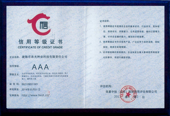 公司擁有種子繁育基地3萬畝,年產(chǎn)種子1200萬公斤左右。自成立以來在農(nóng)業(yè)部及遼寧省歷次花期檢驗中,所生產(chǎn)的種子質(zhì)量合格,擁有良好的儲備、晾曬和機械加工設(shè)備,為了提高種子質(zhì)量,2015年新購置種子脫粒機、清選機、烘干機以及電腦包裝機等整套加工設(shè)備,擁有經(jīng)省技術(shù)監(jiān)督局認證的“標準化檢驗室”,投資20萬元購買人工氣候室、土壤測試儀、低溫低濕冷藏箱等各種檢驗設(shè)備。公司重視種子科研工作,現(xiàn)有科研育種實驗基地100畝,科研上以自主研發(fā)為主,同時與多家科研單位合作育種,每年繁、育、測交材料2000多份,現(xiàn)以推出五個組合參加錦州區(qū)域試種,其中“農(nóng)光3號、農(nóng)光4號”在錦州地區(qū)試驗中產(chǎn)量居首位。2006年公司買斷的連玉16玉米品種已通過5個省市的審認定,具有適應(yīng)性廣、抗逆性強、產(chǎn)量高的特點,曾榮獲大連科技進步一等獎,深受廣大農(nóng)戶的歡迎。2008年公司新選育的農(nóng)光4000玉米品種在市種子管理站新品種大區(qū)試驗項目中。2012年公司買斷錦玉118品種權(quán),新品種的推廣與應(yīng)用為公司的發(fā)展提供了充足的動力......